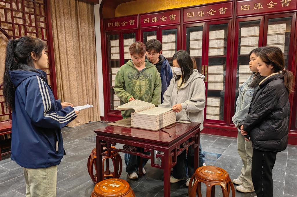 入馆教育实地观摩中,图书馆老师们带领2023级新生参观图书馆特藏室、二三楼书库、图书馆数据库……从图书馆概况、四库全书的阅览,校园一卡通的使用方法到图书的借还规则等,进行了深入细致的教育引导,使新生对学校图书馆的基本概况、图书馆服务、图书馆检索系统以及馆藏资源的利用有了全面的了解。
