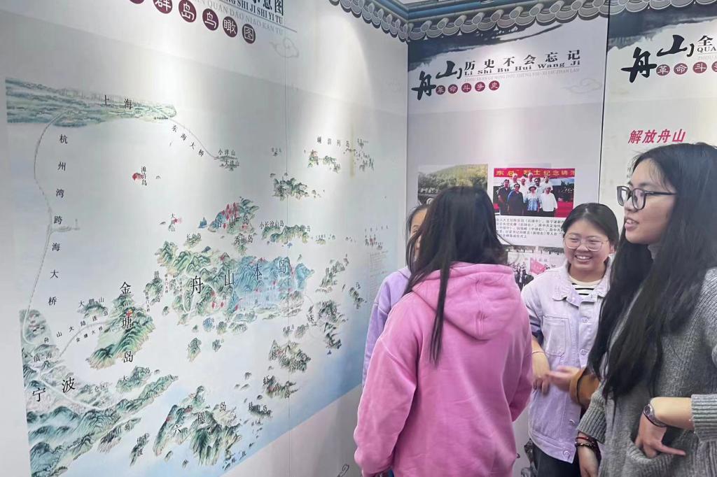 在东海阁,同学们通过历史图片资料了解了舟山悠久的发展历史,从大革命时期到解放战争时期舟山人民在党的领导下进行的一次又一次革命,体会了革命先烈拳拳的爱国情怀,再现了中国共产党成长发展壮大的光辉历史。
