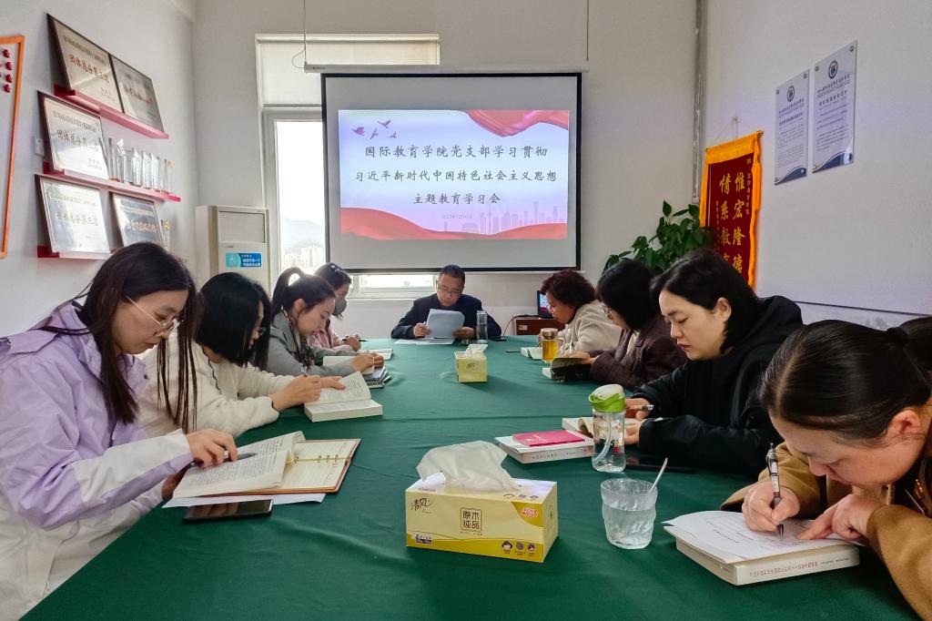 为持续深入开展主题教育,紧紧围绕“学思想、强党性、重实践、建新功”的总体要求,12月6日下午,国际教育学院党支部在海智楼1501会议室召开了第三次主题教育学习会。