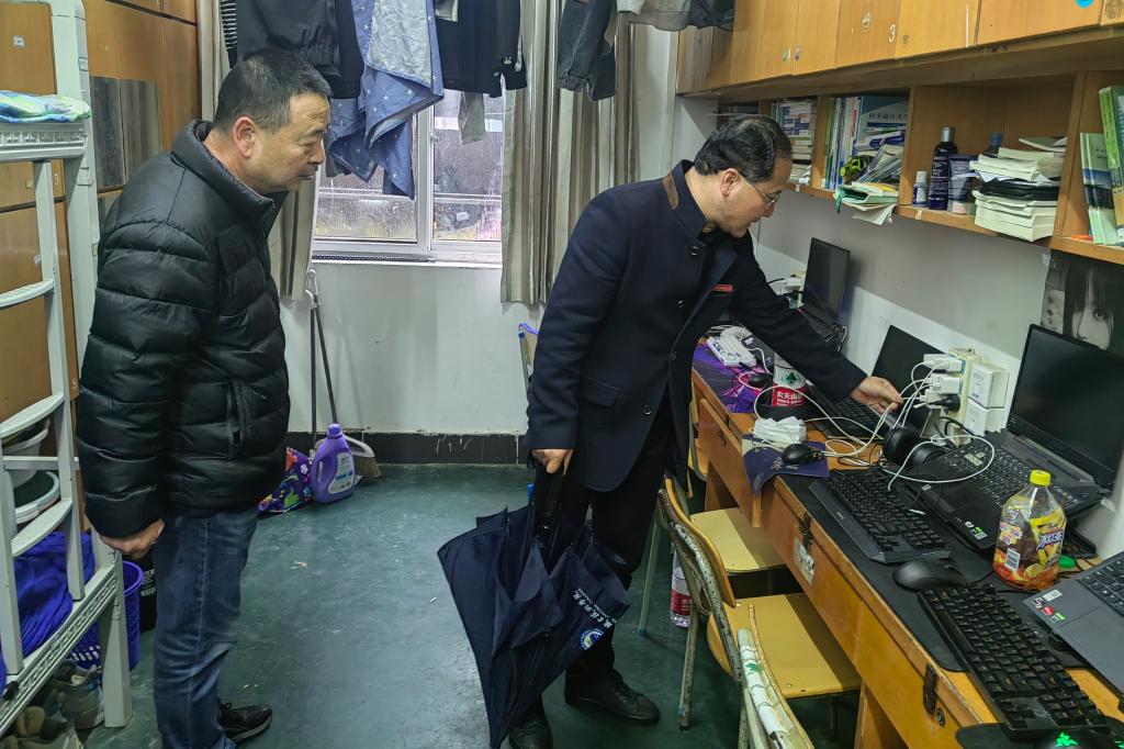 孔志光副书记指出,全校上下要充分认清岁末年初校园安全工作的严峻形势,严格按照省市有关工作要求,加强对校园安全重点领域的隐患排查,全面防范化解校园安全风险。要严格落实工作责任,杜绝学生寝室使用大功率电器、违规用火用电用气等,落细落深校园安全各项防范措施;要提高风险防范意识,夯实校园安全基础保障,面对极端天气带来的校园安全问题,要及时采取有效措施,切实保障师生安全。(保卫工作部、学生工作部)