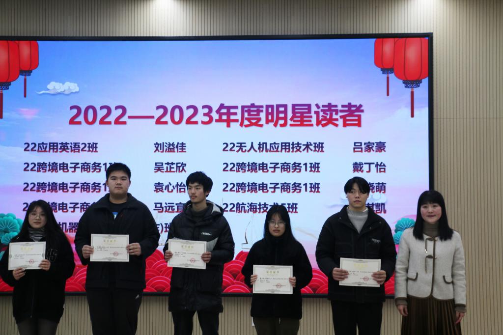 闭幕式以视频短片回顾了“读者服务月”活动的精彩瞬间,对各项比赛获奖者进行颁奖。其中海洋装备工程学院荣获图书检索团体一等奖;刘溢佳等9位同学荣获2023年度校园明星读者;董绍者等39名同学在“超星杯”经典阅读积分挑战赛中获奖;应雨佳等38名同学在2023年浙江省高职高专院校信息素养大赛中获奖。活动的成功举办丰富了同学们的业余生活,营造了书香海运氛围,推动了校园文化建设。(图文/刘霏霏)