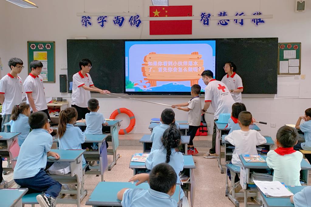 这已不是石油化工学院首次开展此类活动。自2022年起,他们就建立了“高-小”合作课堂模式,每学期都走进小学科普应急救护知识。 多年的坚持让这项社会实践活动取得了显著的成效,也让越来越多的小朋友意识到了防溺水的重要性。(石油化工学院)
