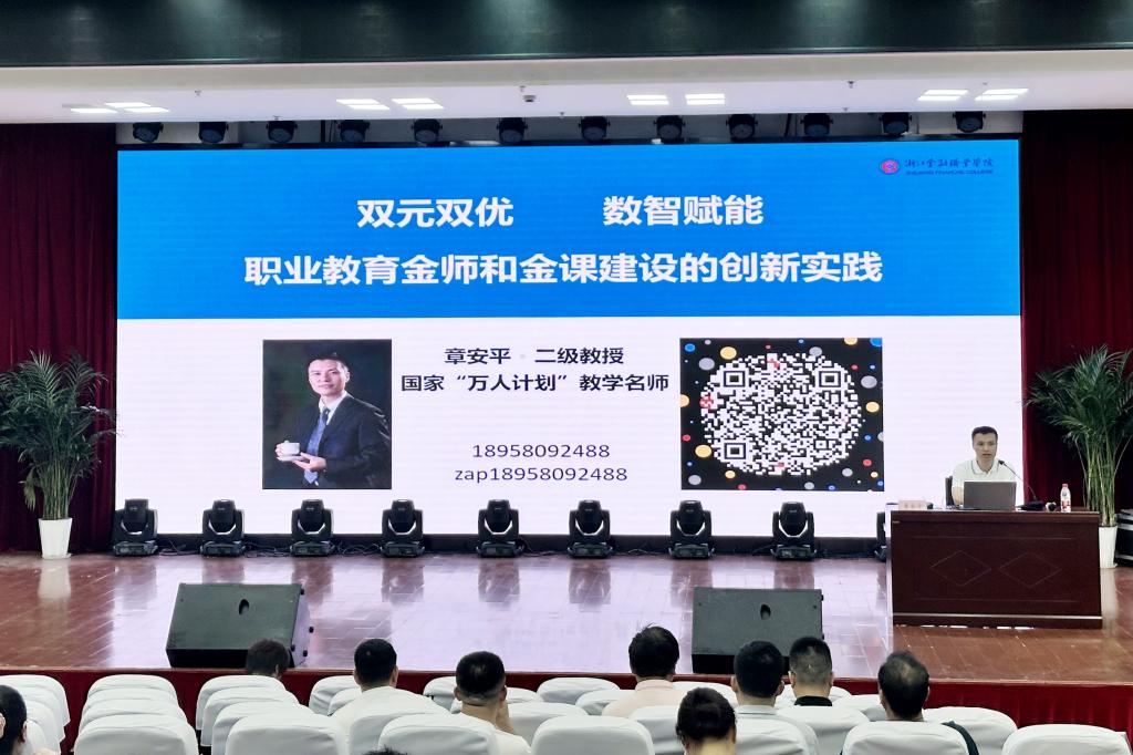 为深入学习职业教育“五金”建设内涵,助推新“双高”建设,7月9日,学校邀请了国家“万人计划”教学名师、浙江金融职业学院章安平教授为我校全体教师开展了两场专题讲座。