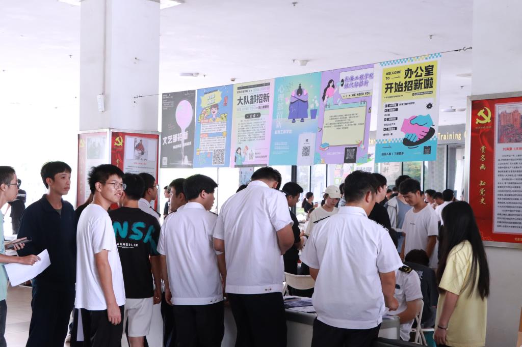9月25日,校院两级团委、学生会和社团招新活动在董浩云图书馆一楼顺利进行。现场人头攒动,气氛热烈,各部门结合自身特色,通过展板海报、互动体验、才艺表演等多种形式“招兵买马”。新生们被热情洋溢的氛围所感染,怀着浓厚的兴趣穿梭于各个学生组织展位之间驻足观看,认真比较并选择自己为之心动的部门以及社团。