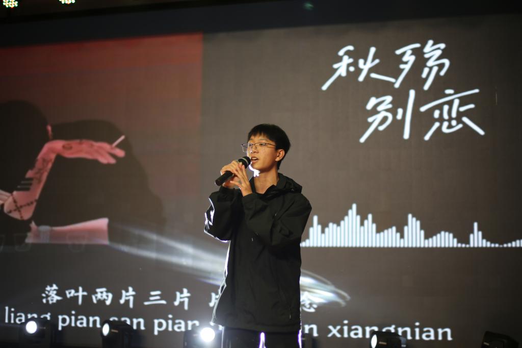 在比赛的开篇和结尾,分别由街舞社带来了青春洋溢的舞蹈表演《YES REO EYE》和礼仪社带来了走秀表演《韵味江南》,比赛中间穿插设置了互动游戏“猜歌答题”,增强了比赛的互动性,调动了现场氛围,欢呼声与歌声此起彼伏,现场气氛热烈。
