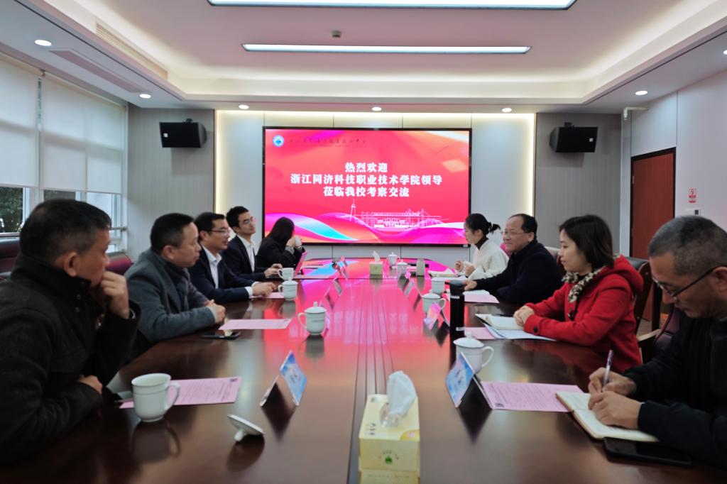 近日,浙江同济科技职业技术学院党委委员、副院长吴敏启一行来校交流访问,我校党委副书记孔志光,学工部、校团委等部门相关人员参加了座谈会。
