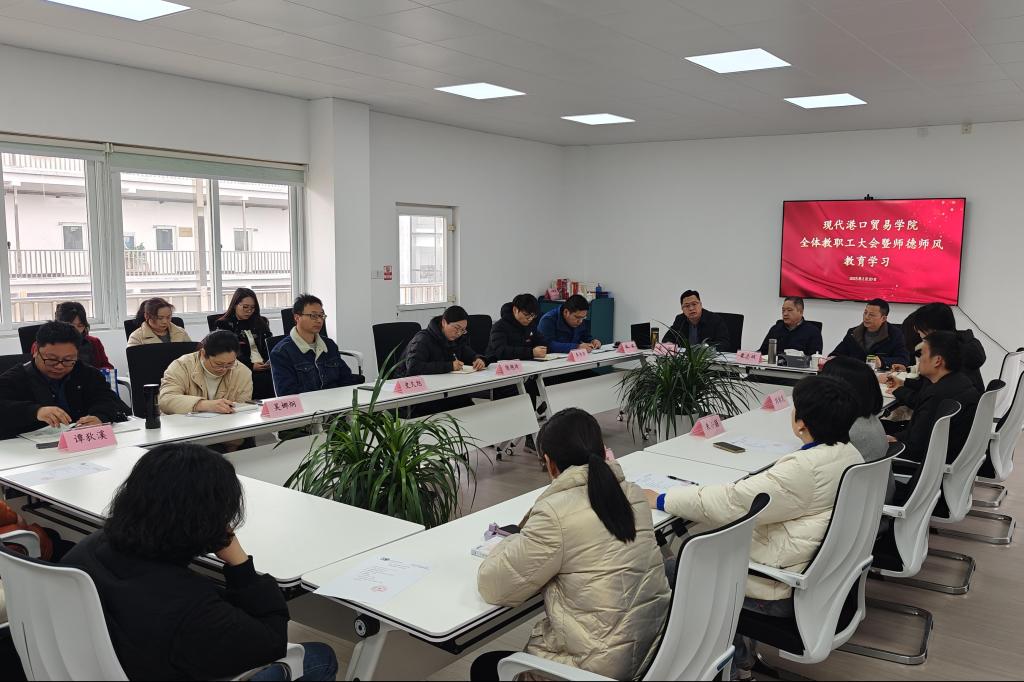 2月20日,现代港口贸易学院在海德楼4304党员活动室举行了春季学期全体教职工大会暨师德师风教育学习。校党委委员、副校长曹志斌出席本次会议,学院全体教职工参加会议。大会由学院院长王贵斌主持。