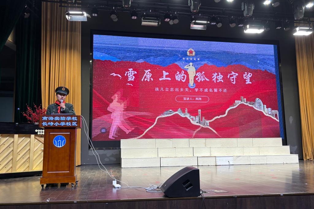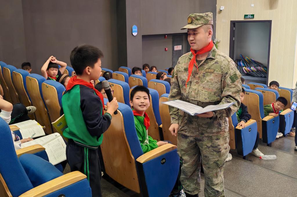 由三名退伍复学大学生组成的宣讲团队,以“迷彩播种 童心向党”为宣讲主题,依托军营故事,通过战术动作演示、军旅影像展播、互动问答等形式,生动展现了军旅生活别样的魅力以及对个人成长带来的深刻影响,引导小学生在沉浸式体验中厚植国防观念,让红色基因在寓教于乐中生根发芽。