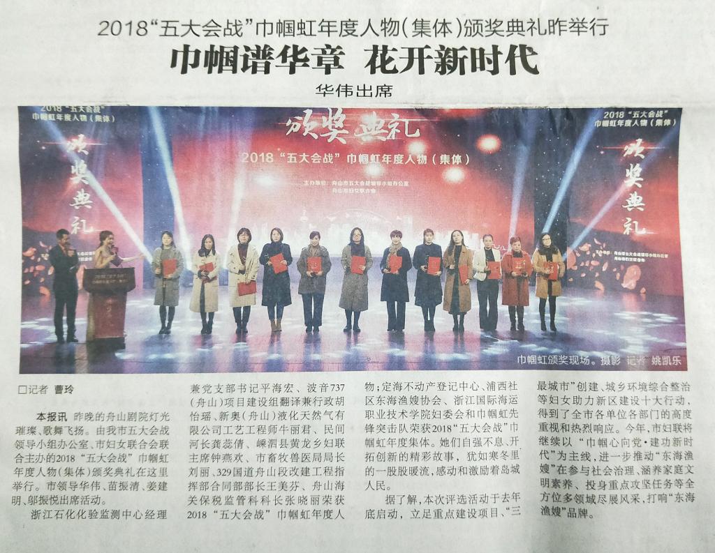 (2019年3月7日《舟山日报》头版 http://www.zhoushan.cn/newscenter/zsxw/201903/t20190307_917629.shtml )