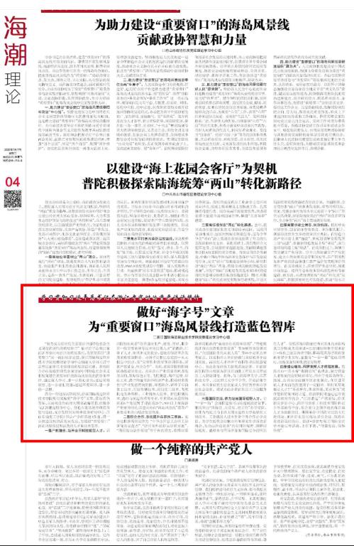 做好“海字号”文章 为“重要窗口”海岛风景线打造蓝色智库
