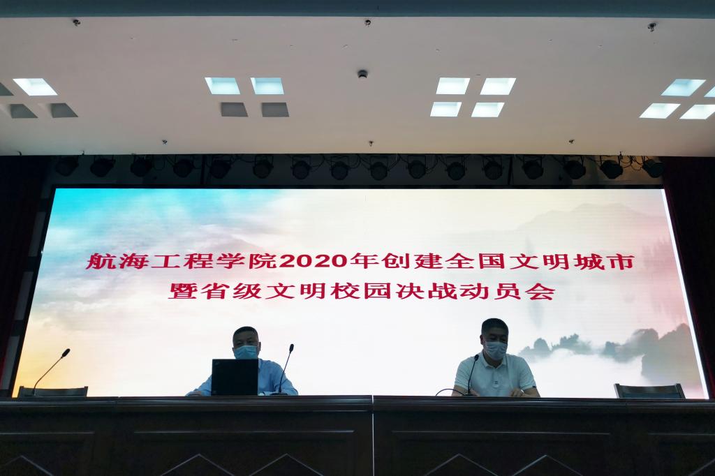 5月28日下午,航海工程学院在图书馆4楼报告厅召开了创建全国文明城市和省级文明校园决战动员会。航海工程学院全体教职工和行政班子成员参加会议。