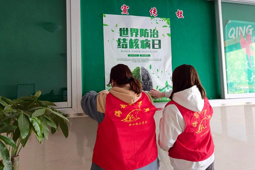 志愿者们通过张贴海报和悬挂横幅的形式向大家宣传普及了结核病的相关知识以及结核病的可疑症状、传染途径,切实提高了学生们的自我保护意识。