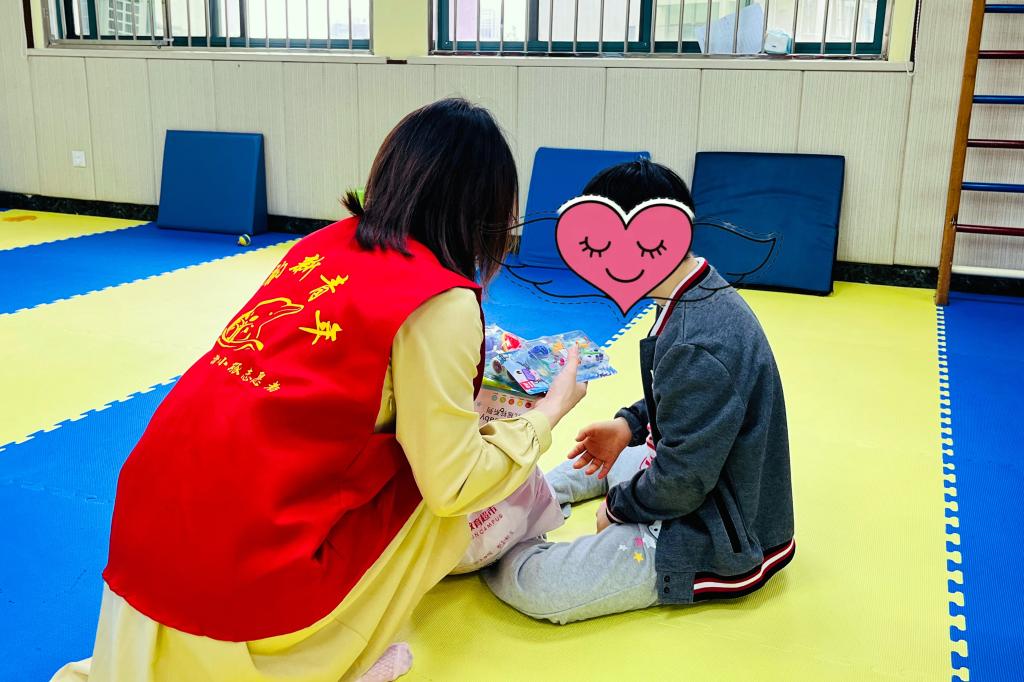 志愿者师生们精心准备了小礼物,为孩子们送上了节日的问候,并陪伴孩子们一起做智力感统活动、康复运动训练,耐心与孩子们进行交流。虽然他们无法表达言语,但是脸上洋溢着温暖人心的笑容。