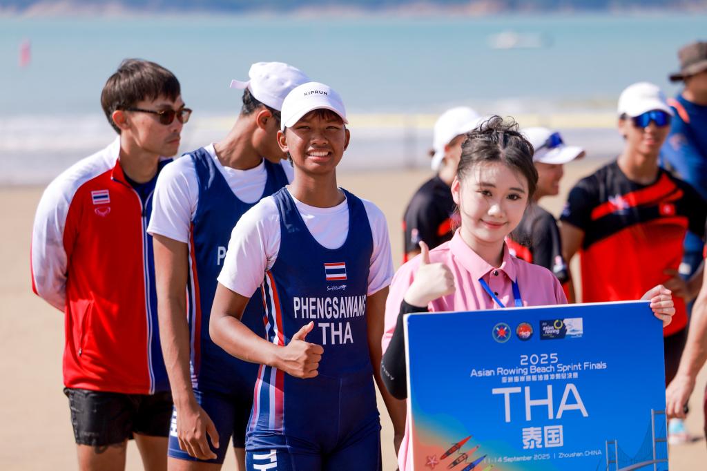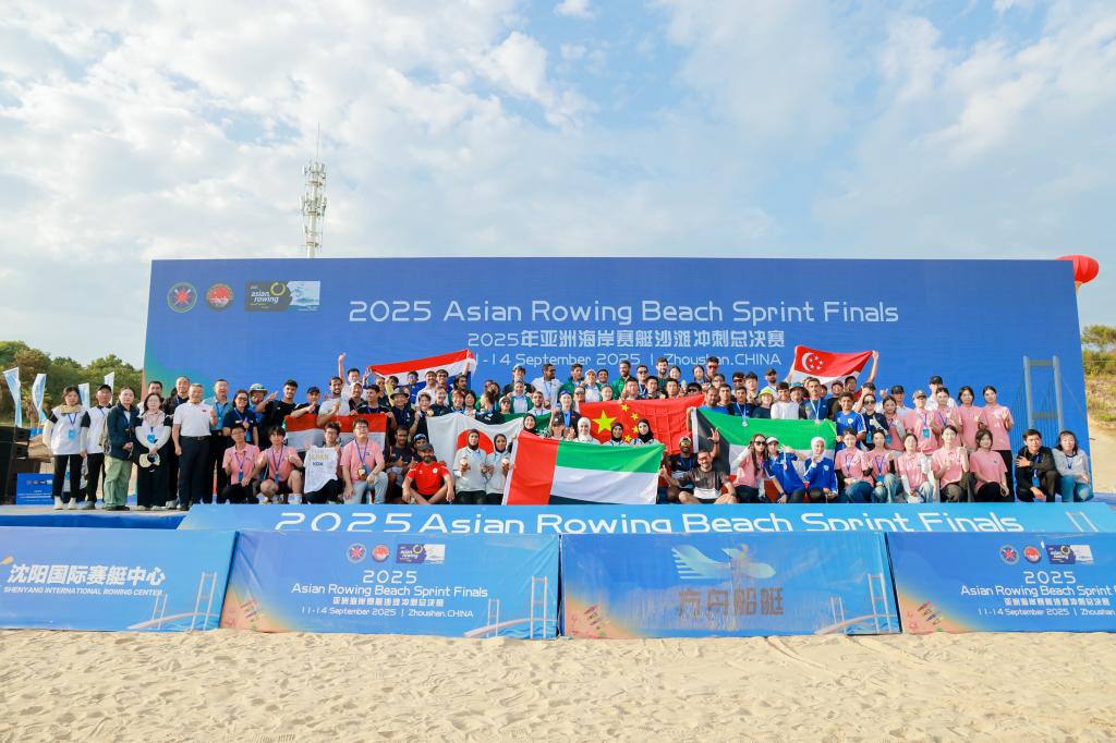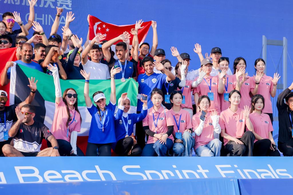 9月11日至14日,亚洲海岸赛艇沙滩冲刺总决赛在浙江舟山朱家尖南沙成功举办。本次赛事由亚洲赛艇联合会主办,中国赛艇协会与舟山市人民政府共同承办,吸引了来自中国、日本、科威特、新加坡、阿联酋、泰国、中国香港等11个国家和地区的60名运动员及31名队伍官员参与。作为亚洲范围内水平最高、规模最大的海岸赛艇沙滩冲刺赛事之一,此次赛事不仅是竞技的舞台,更是推动体育与文化、旅游深度融合的重要平台。在这场高规格的国际赛事中,我校21名师生组成的双语志愿服务团队以出色的语言能力、专业的服务水平和高度负责的态度,赢得了组委会与各国参赛队伍的一致好评。