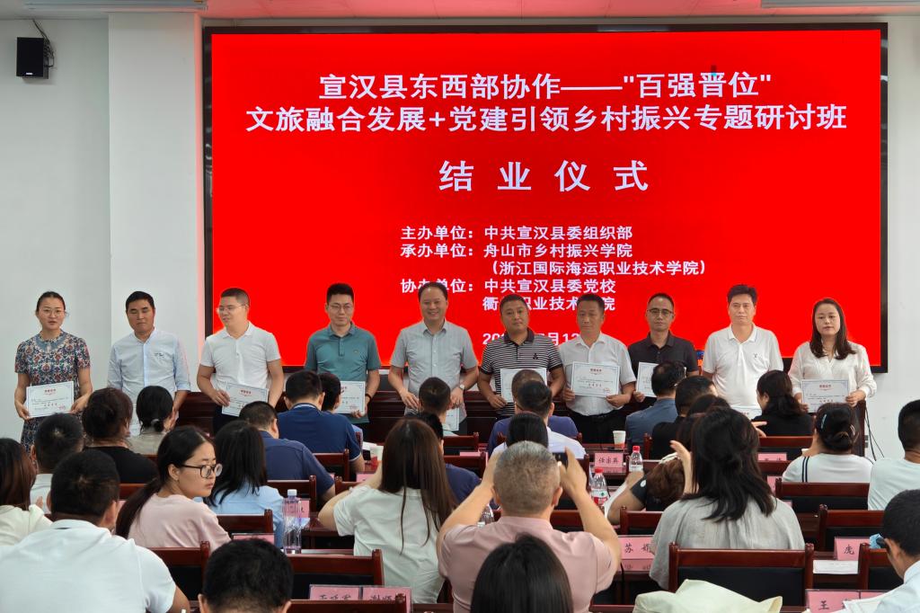 为积极落实东西部协作国家战略,推进学校与宣汉县的合作协议落地见效,7月1日-12日,由中共宣汉县委组织部主办,学校东海教育学院承办的宣汉县东西部协作——“百强晋位”系列专题第一阶段研讨班在中共宣汉县委党校圆满结束。本阶段共开展城乡融合发展专题、党建引领乡村振兴、文旅融合发展暨文旅消费提升共3个专题,宣汉县各部门、乡镇村社、重点企业等负责人共计229人参加培训。